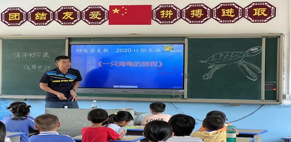 | 湖南省普法中心讯(张芳玲 李元攀 通讯员 黄华军 毛洁 奉姣)金秋九月,丹桂飘香。9月23日,广东省佛山市好友营青少年助学基金会(好友营支教)的伍景勋老师带领支教团队来到湖南省宁远县五龙山中心校开展送教活动。 上午10时30分,伍哥给四年级孩子上了一堂别开生面的科学绘本课——《一只海龟的旅程》,支教过程中,伍哥老师亲切地让孩子们称呼他为伍哥,拉近了与同学们的距离,他用幽默风趣的表达方式和精彩的绘本勾起了同学们对海洋中的生物强烈的好奇心和求知欲,通过学习,孩子们了解到了种类繁多的各种海洋生物,懂得了一只幼海龟健康成长至成年海龟是多么的不容易,感受到了“一鲸落,万物生”的伟大,更明白了环境对人类、对动物是多么的重要! 上午11时20分,在给七年级孩子上成长课——《大山里的孩子》时,伍哥通过展示自己2007年在四川省木里县进行支教的照片,一幅幅照片顷刻间就攫住了同学们的好奇心。看到比自己身处更偏远的大山里的孩子们,为了上学竟然要走4个多小时的路程,同学们陷入了深深地沉思,从而对自己当前的学习生活倍感珍惜。美好的时光总是短暂的,课程接近尾声时,伍哥给孩子们提出了殷切的希望,他希望五龙山瑶族乡的学子们能更加热爱生活、珍惜今天来之不易的美好生活,通过自己的努力拼搏,将来有能力了好去帮助更多需要帮助的人。上午12:00,送教活动在温馨和谐的氛围中落下帷幕。 活动结束后,伍哥给同学们赠送了一些绘本书册,同学们与对好友营支教老师依依惜别,相信在伍哥及他的支教团队的影响下,孩子们长大后也能像伍哥这样继续怀大爱做善事,在充满灿烂阳光的蓝天下更加茁壮成长! 编辑:张芳玲 责编:朱海荣 |