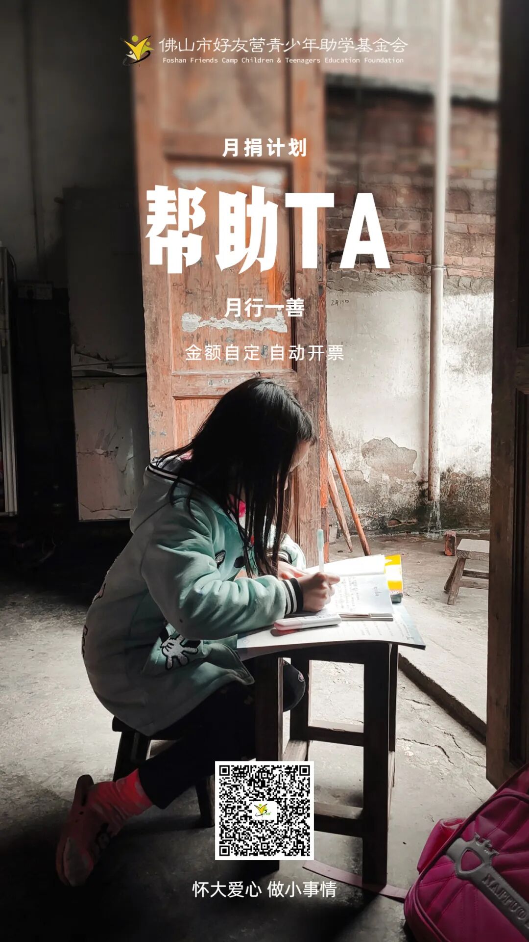 扫码加入我们的月捐计划吧,为乡村孩子点燃希望之光!