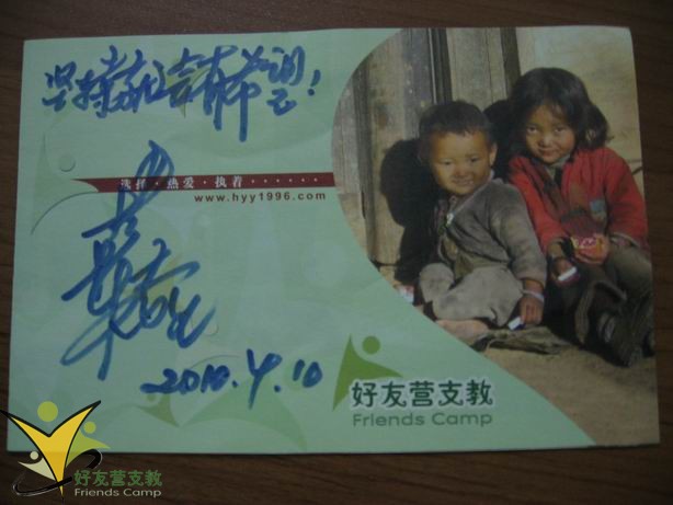 韩乔生和蚁族歌手李立国、白万龙为好友营支教签名